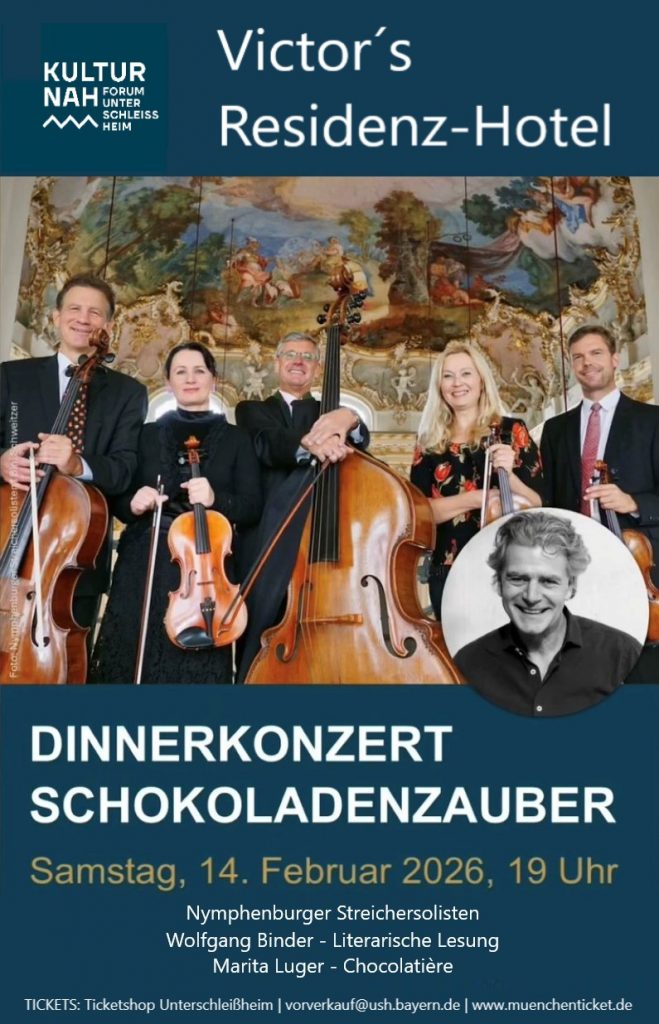 14.02.2026, 19 Uhr, Dinnerkonzert Schokoladenzauber, Raum „Eastside“ im Victor´s Residenz Hotel Unterschleißheim