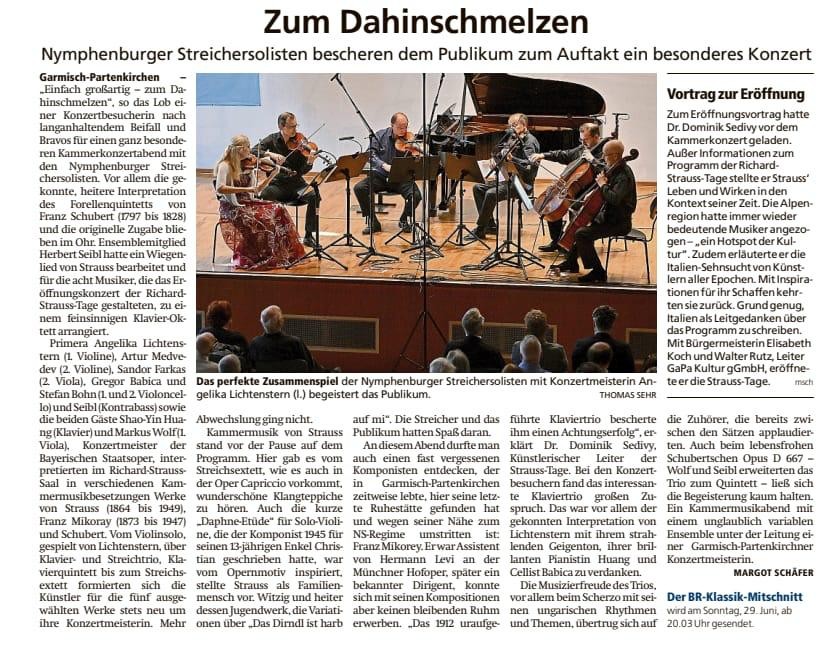 GARMISCH-PARTENKIRCHEN – Einfach großartig – zum Dahinschmelzen … „langanhaltender Beifall und Bravos für einen ganz besonderen Kammerkonzertabend …“